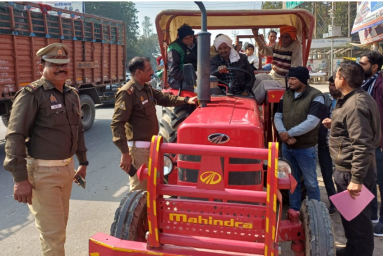 श्रीरामनगरिया मेला क्षेत्र में यातायात नियमों का सख्त अनुपालन, ट्रैक्टर चालकों को किया गया जागरूक