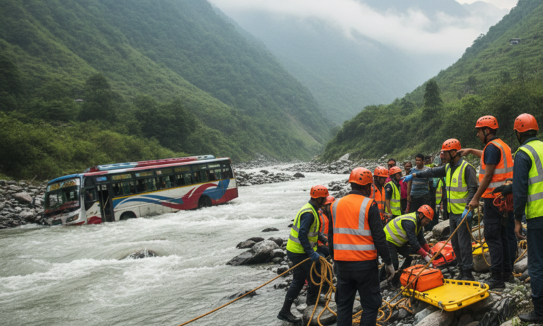 नेपाल में चीख-पुकार: अनियंत्रित होकर उफनती नदी में गिरी यात्री बस, 18 की मौत, रेस्क्यू ऑपरेशन जारी