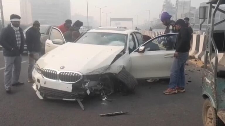 रेलिंग तोड़ खेत में घुसी बीएमडब्ल्यू, 100 की रफ्तार से चल रही थी कार चालक घायल, स्टंटबाजी का आरोप