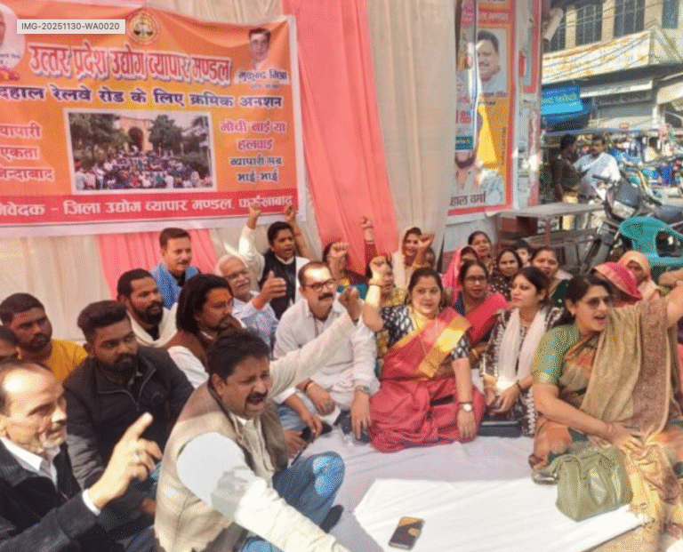 संवाद 24। फर्रुखाबाद में रेलवे रोड निर्माण कार्य लंबे समय से ठप पड़े रहने से नाराज़ व्यापारियों ने रविवार को चौक पर धरना देकर विरोध जताया। उत्तर प्रदेश उद्योग व्यापार मंडल के जिला अध्यक्ष सदानंद शुक्ला के नेतृत्व में लगभग…