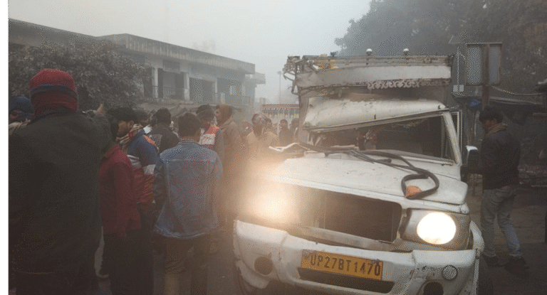 घने कोहरे में पिकअप–ट्रक की सीधी टक्कर, 22 वर्षीय चालक गंभीर घायल