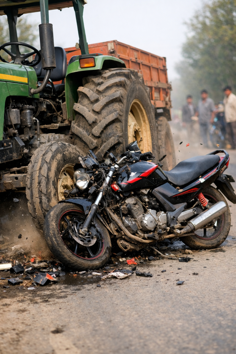 ट्रैक्टर की टक्कर से बाइक सवार बुजुर्ग की मौत, नाती घायल, चालक फरार