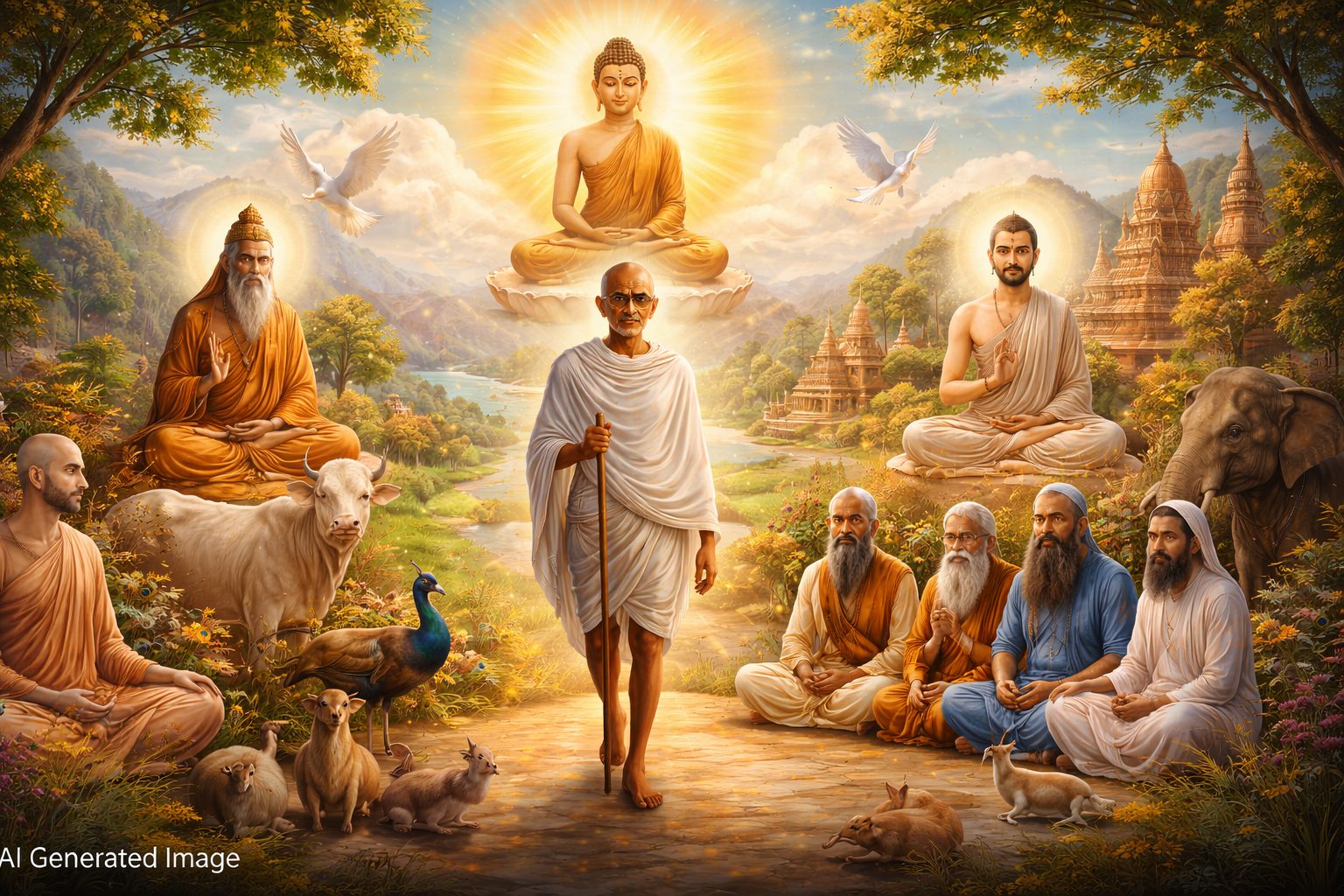 जैन मुनियों की तपस्या, बुद्ध की करुणा, गीता का धर्म, और गांधी का सत्याग्रह — सबका मूल एक ही है — अहिंसा।