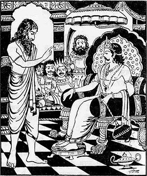 दरबार में भी राजा सैनिकों की बातों पर आँख मूंदकर विश्वास कर लेता है। संन्यासी के पास चोरी का सामान मिलना उसे अपराध का प्रमाण लगता है। परिणामस्वरूप राजा मांडव्य ऋषि को “शूल दंड” यानि लोहे के भाले पर चढ़ाने जैसा कठोर दंड दे देता है।