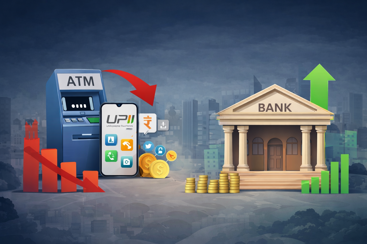 डिजिटल भुगतान के विस्तार ने नकद लेन-देन की आवश्यकता को काफी हद तक कम किया है। UPI, मोबाइल वॉलेट, ऑनलाइन बैंकिंग और QR कोड आधारित भुगतान जैसे विकल्पों के कारण ग्राहकों को अब नकद निकालने की ज़रूरत कम महसूस होती है।