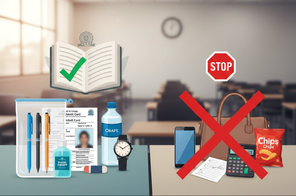 परीक्षा केंद्र पर प्रवेश के लिये अभ्यर्थियों को कुछ जरूरी दस्तावेज़ साथ लाना अनिवार्य है। CBSE ने स्पष्ट किया है कि अभ्यर्थियों को केवल वही दस्तावेज़ परीक्षा हॉल में ले जाने की अनुमति है, जिनका विवरण आधिकारिक गाइडलाइंस में दिया गया है। ये दस्तावेज़ इस प्रकार हैं: