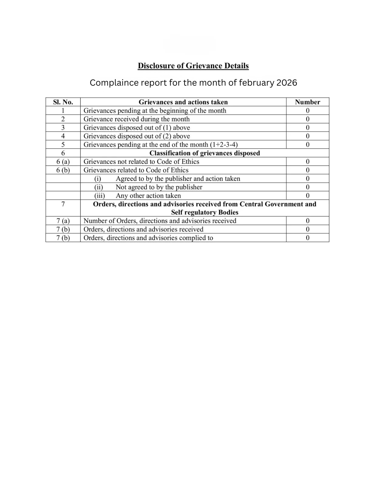 संवाद 24 में हम नैतिक पत्रकारिता, पारदर्शिता और जवाबदेही के लिए प्रतिबद्ध हैं। हम अपने पाठकों के अधिकारों का सम्मान करते हैं और सामग्री, गोपनीयता अथवा संपादकीय आचरण से संबंधित शिकायतों के निवारण हेतु एक सुव्यवस्थित शिकायत निवारण तंत्र उपलब्ध कराते हैं।