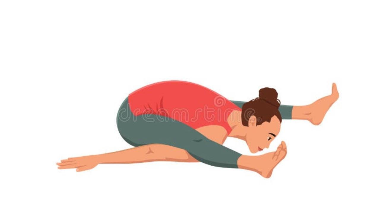 धीरे-धीरे दोनों पैरों को जितना संभव हो उतना फैलाएँ। ध्यान रखें कि घुटनों पर अनावश्यक दबाव न पड़े।