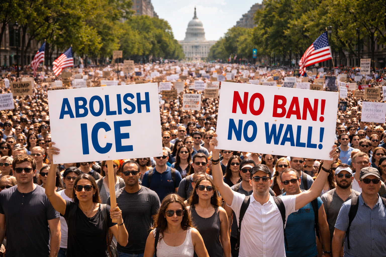 अमेरिका में ट्रंप की इमिग्रेशन नीतियों के खिलाफ सड़कों पर उतरा जनसैलाब