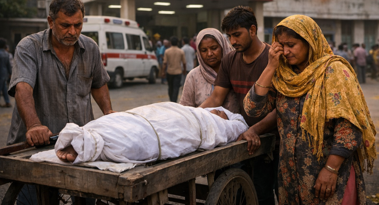 परिवार के सामने विकल्प के तौर पर प्राइवेट शव वाहन था, लेकिन उसका किराया गरीब मजदूर परिवार की पहुंच से बाहर था। कुछ किलोमीटर की दूरी के लिए सैकड़ों रुपये मांगे जा रहे थे। इलाज में पहले ही कर्ज में डूब चुका परिवार यह खर्च उठाने की स्थिति में नहीं था।