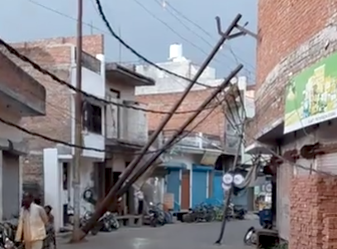 आंधी में गिरे बिजली के पोल, काली मंदिर के पास टला बड़ा हादसा
