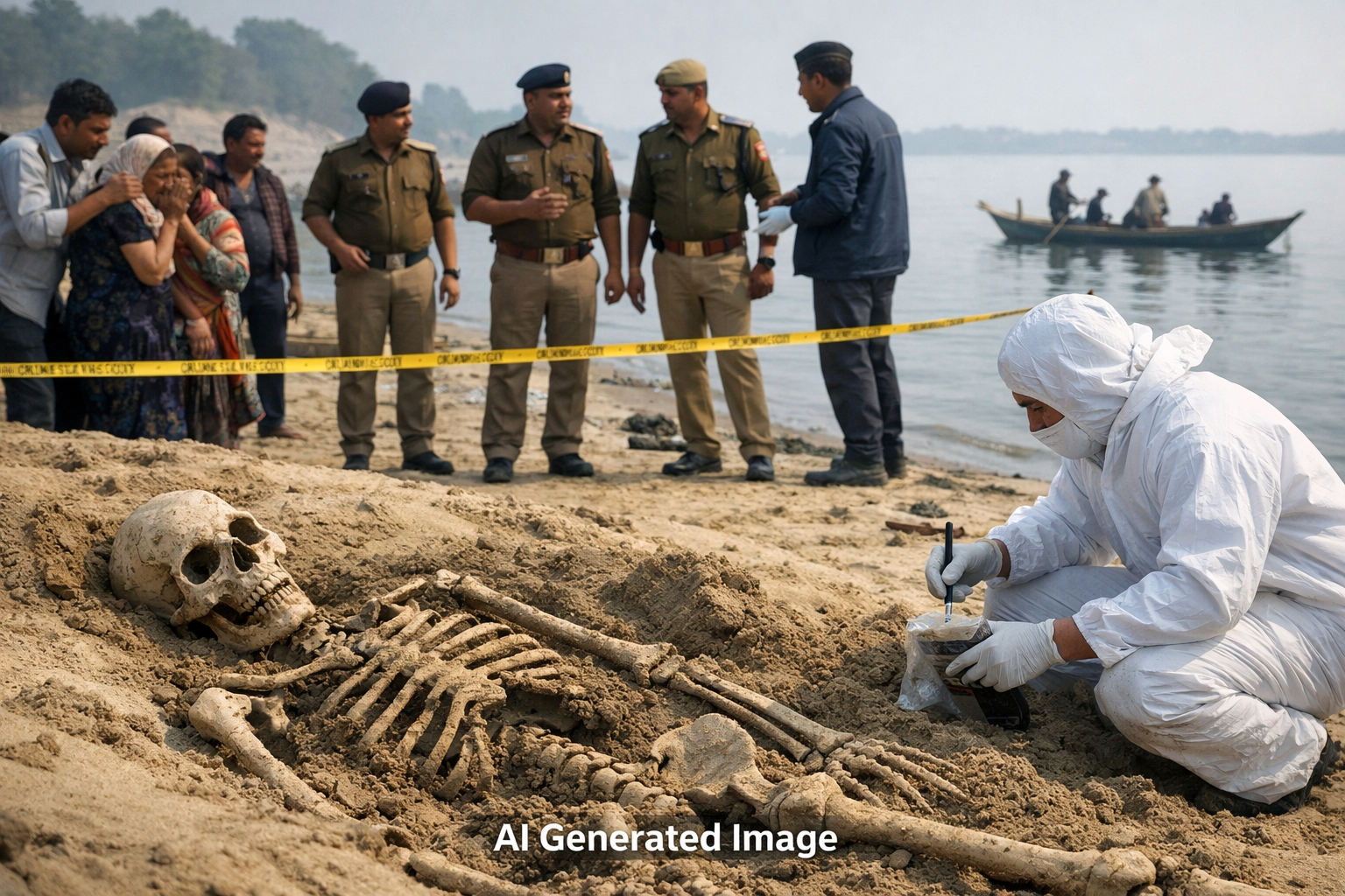कुबेरपुर घाट में बालू से निकला नर कंकाल, 7 माह पुराने लापता चौकीदार से जुड़ रही कड़ी