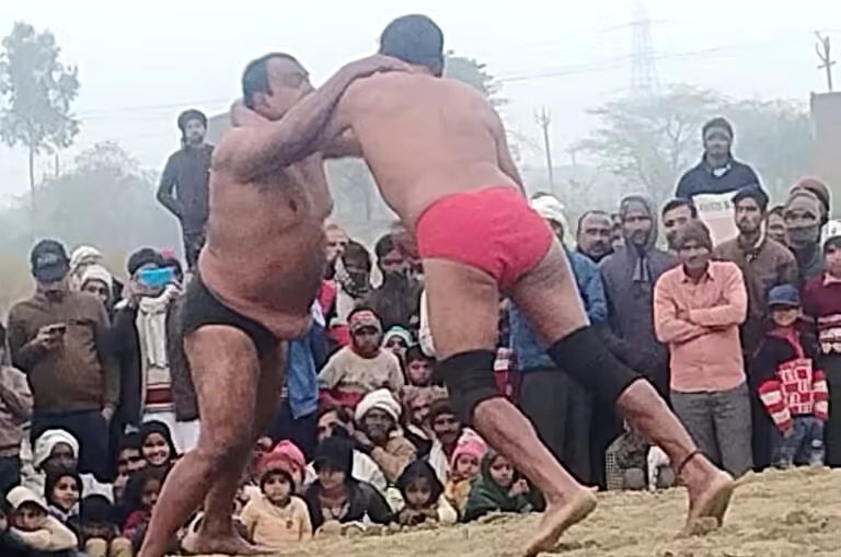 जैनपुर के विराट दंगल में नामी पहलवानों ने दिखाया दम, अंतिम कुश्ती रही बराबर