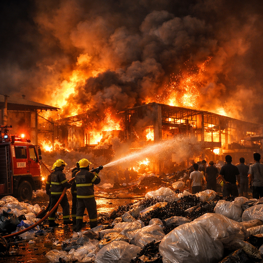 पुखरावा गांव की प्लास्टिक फैक्ट्री में भीषण आग, लाखों का नुकसान देर रात लगी आग पर कई घंटे बाद पाया गया काबू