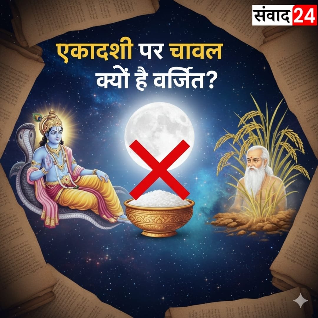 संवाद 24 आचार्य मधुसूदन अग्निहोत्री। सनातन धर्म में एकादशी व्रत को ‘व्रतों का राजा’ कहा गया है। भगवान श्रीहरि विष्णु को समर्पित इस दिन मन, कर्म और वचन की शुद्धि पर विशेष बल दिया जाता है। लेकिन एक प्रश्न अक्सर पाठकों के मन में उठता है “एकादशी के दिन चावल खाना वर्जित क्यों है?” संवाद 24 की इस विशेष रिपोर्ट में हम महर्षि मेधा की पौराणिक कथा और चंद्रमा के वैज्ञानिक प्रभाव के माध्यम से इस रहस्य को उजागर कर रहे हैं।