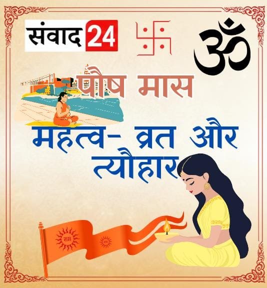 संवाद 24 आचार्य मधुसूदन अग्निहोत्री। पौष मास हिंदू पंचांग का वह पवित्र कालखंड है जिसमें व्रत, स्नान, दान, जप, पाठ और विशेष देव आराधना का अत्यंत शुभ फल प्राप्त होता है। सूर्य जब दक्षिणायण से उत्तरायण की ओर गति करता है, तब पौष मास का प्रत्येक दिन साधना, आत्मशुद्धि और पुण्य संचय के लिए महत्वपूर्ण माना गया है।