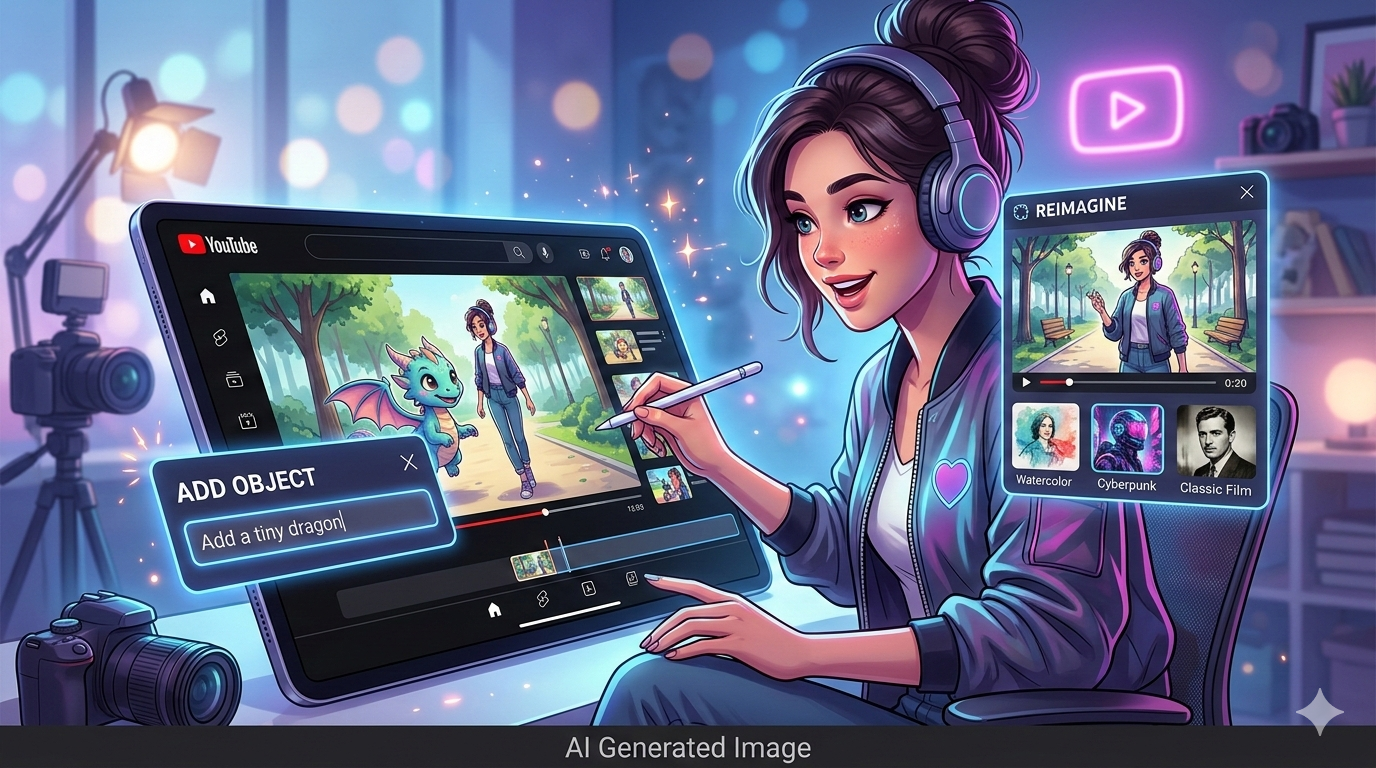 संवाद 24 डेस्क। डिजिटल मनोरंजन की दुनिया में क्रांति अब एक नए पायदान पर पहुँच चुकी है। गूगल के स्वामित्व वाले प्लेटफॉर्म यूट्यूब ने अपने शॉर्ट-वीडियो फॉर्मेट ‘शॉर्ट्स’ (Shorts) के लिए ऐसे जादुई एआई फीचर्स का परीक्षण शुरू किया है, जो वीडियो एडिटिंग की पारंपरिक परिभाषा को ही बदल देंगे। यूट्यूब के नए ‘Add Object’ और ‘Reimagine’ टूल्स के आने के बाद अब क्रिएटर्स को किसी भारी-भरकम एडिटिंग सॉफ्टवेयर या घंटों की मेहनत की जरूरत नहीं होगी; बस एक छोटा सा टेक्स्ट प्रॉम्प्ट और आपका वीडियो एक नए रूप में दुनिया के सामने होगा।