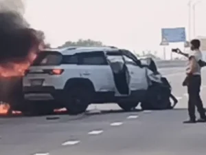 पूर्वांचल एक्सप्रेस-वे पर भीषण टक्कर: दो कारें आमने-सामने भिड़ीं, आग की लपटों में घिरीं; 2 की मौत, कई घायलSamvad 24 OfficeOnDecember 10, 2025