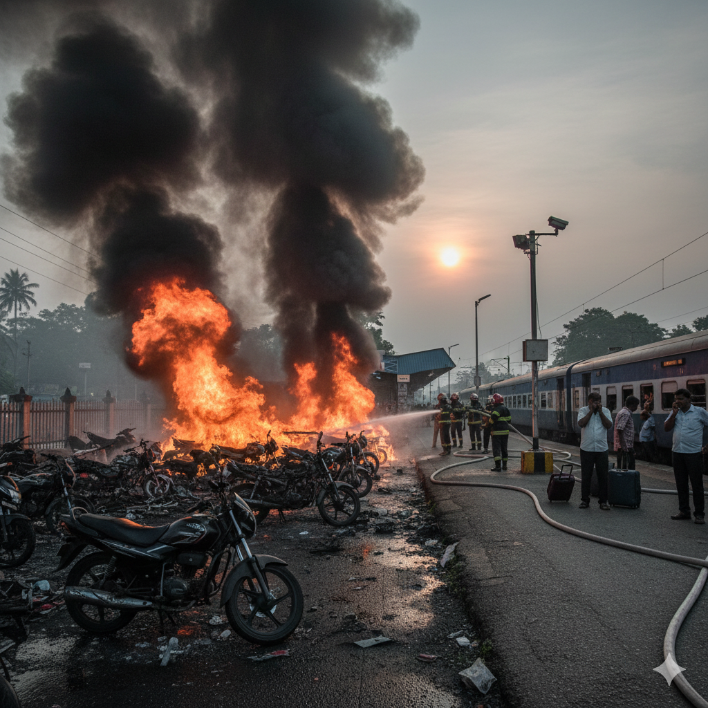 जब त्रिशूर रेलवे स्टेशन पर लगी आग ने बदल दिया सुबह का रंग, भारी नुकसान और सवालों की लपटें