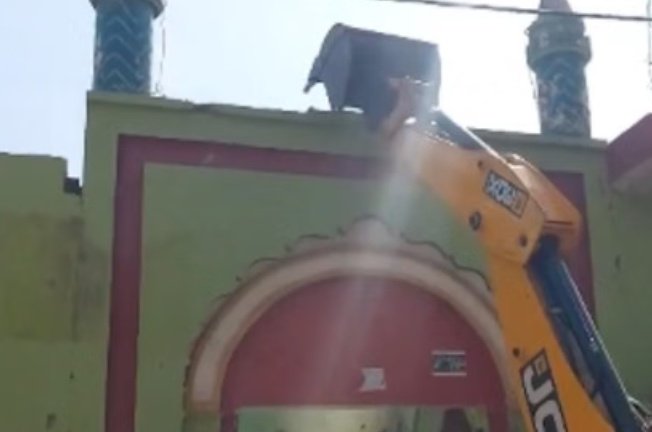 सरकारी जमीन पर बने अवैध मदरसे पर चला बुलडोजर, भारी पुलिस बल तैनात