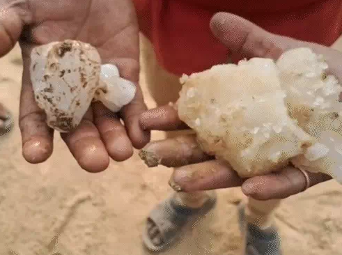 बदायूं में रविवार सुबह उस समय हड़कंप मच गया जब आसमान से अचानक लगभग 1 क्विंटल वजनी बर्फ की सिल्ली गिर गई। घटना ईंट-भट्टे के पास हुई, जहां मजदूर काम कर रहे थे। सिल्ली थोड़ी दूरी पर गिरी, जिससे बड़ा हादसा टल गया। घटना स्थल पर ग्रामीणों की भीड़ जमा हो गई और पुलिस ने मौके पर पहुंचकर जांच शुरू की।