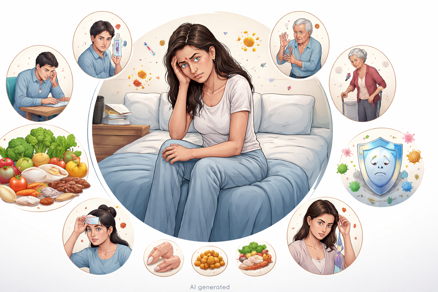 विटामिन C और जिंक की कमी के कारण सर्दी-ज़ुखाम और संक्रमण का खतरा बढ़ जाता है। - तंत्रिका तंत्र की समस्या